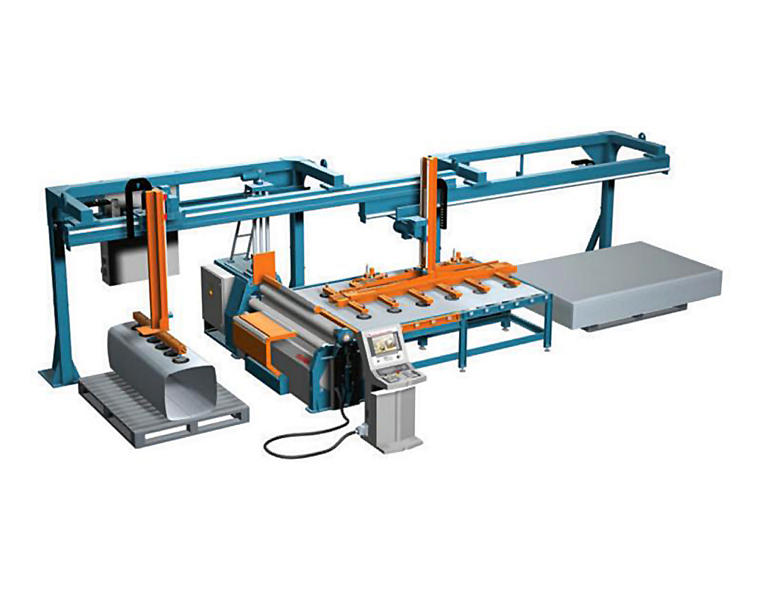 定制款伺服液壓四輥卷板機(jī)+浮動(dòng)托料